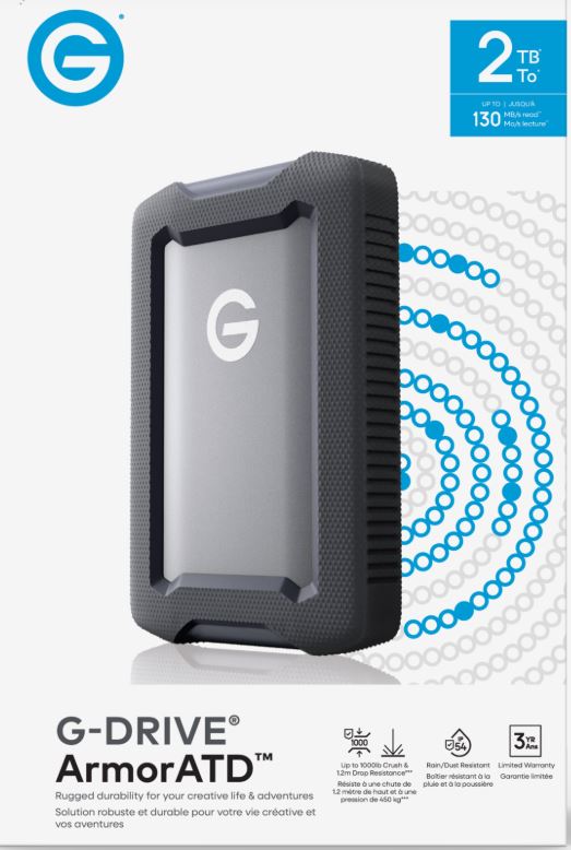 The G-DRIVE® ArmorATD™ rugged portable hard drive is built to protect your content wherever creativity takes you. From remote shoots to studio sessions, this durable drive stands up to bumps, drops, rain, and dust so you can keep creating with confidence. With reliable, high-capacity storage and a design made for life on the move, it gives creators the confidence to capture, back up, and share their work anywhere their adventures lead.